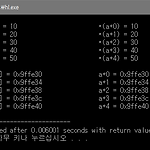 //포인터와 배열 //배열 이름은 포인터//포인터를 배열처럼 사용 가능 // valuea[i] = *(a+i)// reference &a[i] = a+i #include int main(){int a[]={10,20,30,40,50};int i;printf(" value\n");for(i=0; i